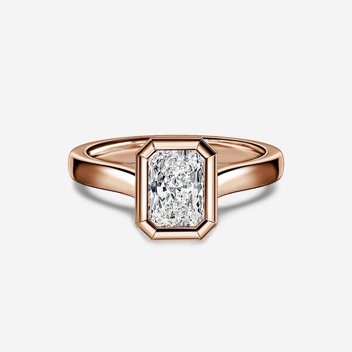 The Harper Rose Gold Bezel Set Engagement Ring features a sleek, modern design with a secure bezel setting that elegantly showcases the center diamond. Crafted in rose gold, it offers a minimalist yet timeless appeal for lasting elegance. Handcrafted in Hatton Gardens, London. Centre Diamond Not Included Setting Only