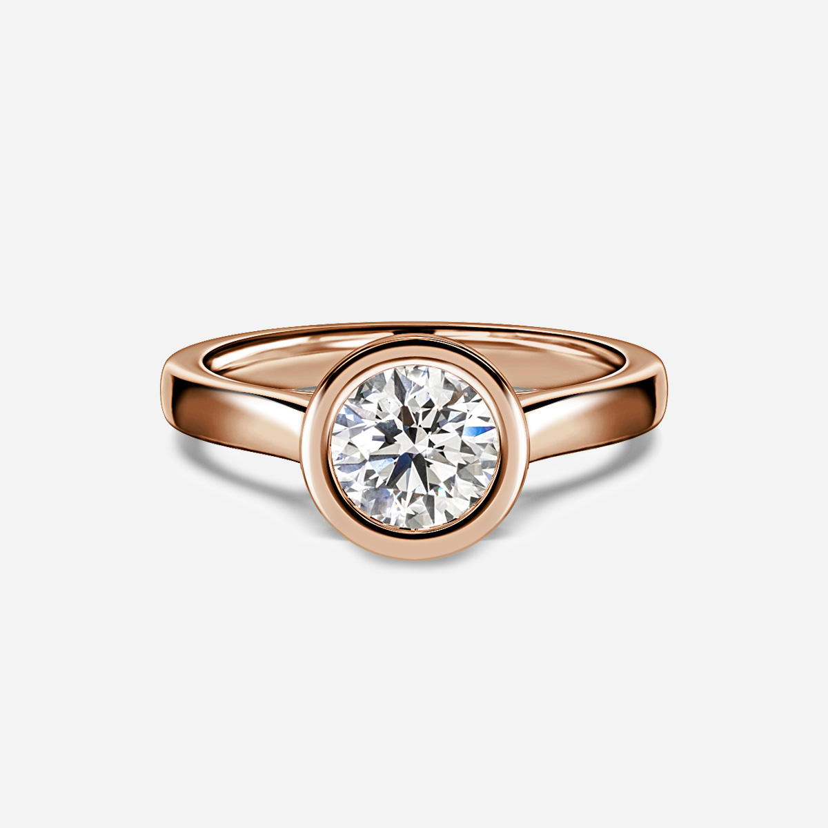 The Harper Rose Gold Bezel Set Engagement Ring features a sleek, modern design with a secure bezel setting that elegantly showcases the center diamond. Crafted in rose gold, it offers a minimalist yet timeless appeal for lasting elegance. Handcrafted in Hatton Gardens, London. Centre Diamond Not Included Setting Only
