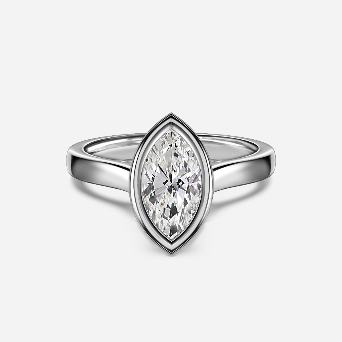 The Harper White Gold Bezel Set Engagement Ring features a sleek, modern design with a secure bezel setting that elegantly showcases the center diamond. Crafted in white gold, it offers a minimalist yet timeless appeal for lasting elegance. Handcrafted in Hatton Gardens, London. Centre Diamond Not Included Setting Only