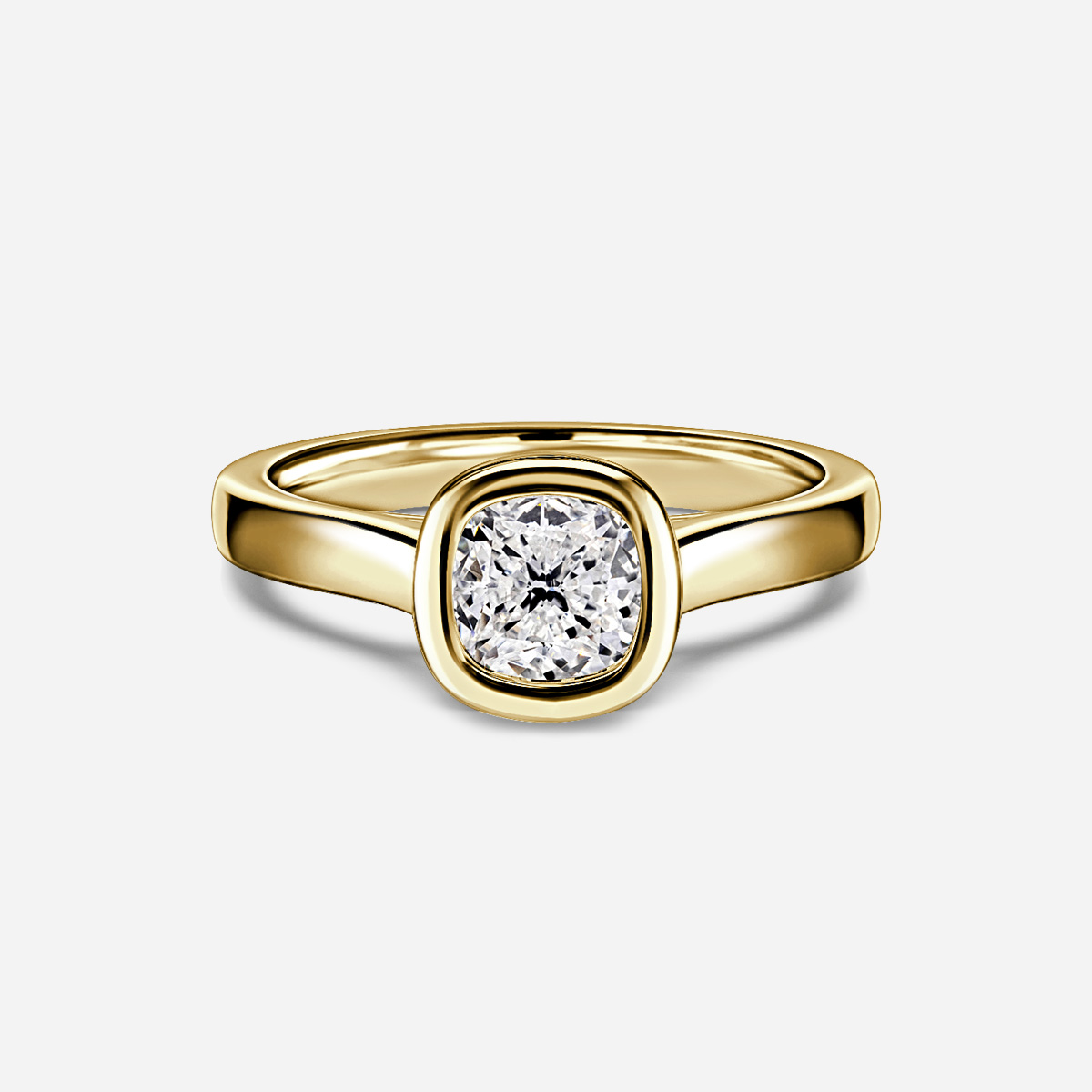 The Harper Yellow Gold Bezel Set Engagement Ring features a sleek, modern design with a secure bezel setting that elegantly showcases the center diamond. Crafted in yellow gold, it offers a minimalist yet timeless appeal for lasting elegance. Handcrafted in Hatton Gardens, London. Centre Diamond Not Included Setting Only