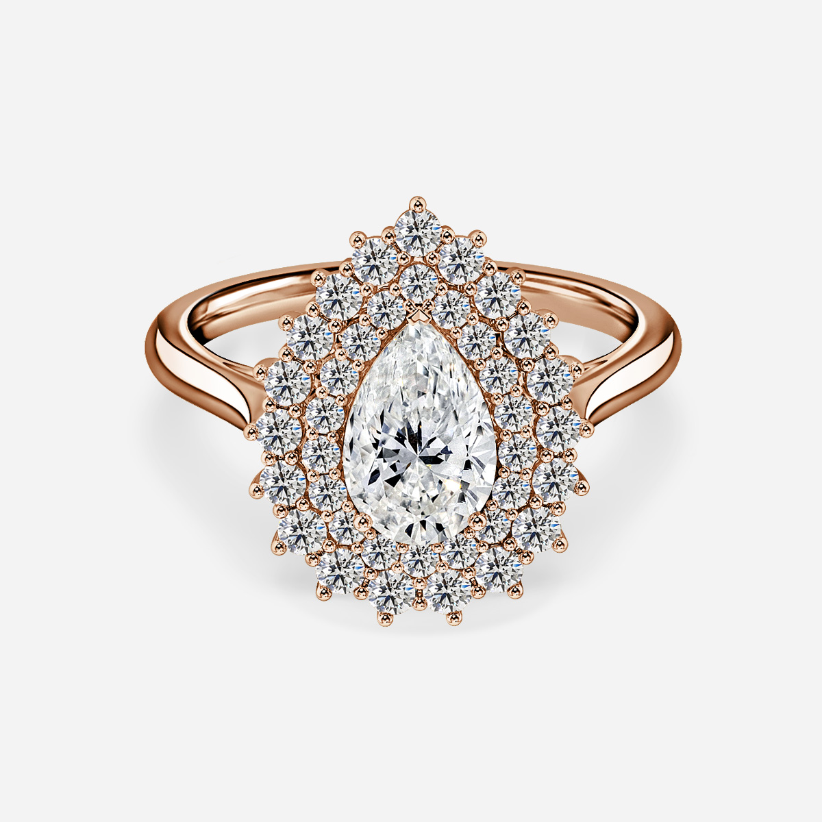 A double Halo Engagement ring features a dazzling center diamond encircled by two distinct halos of smaller diamonds, creating a breathtaking display of brilliance and elegance. Handcrafted in Hatton Gardens, London. Centre Diamond Not Included Setting Only