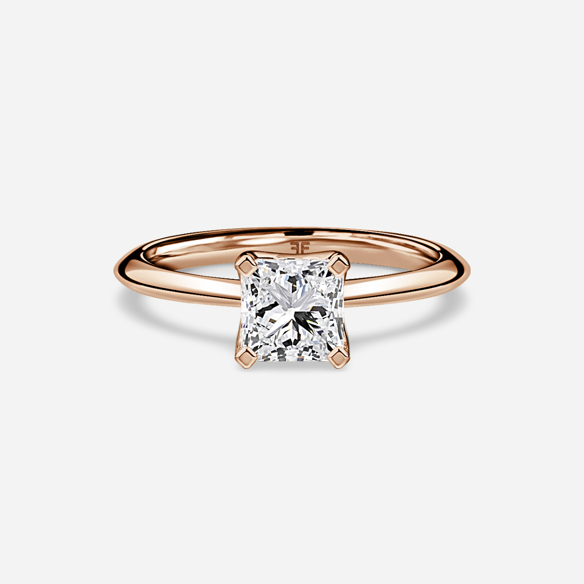 The Isa Rose Gold Solitaire Engagement Ring presents a solitary diamond on a durable rose gold band, offering a straightforward and classic look. Its minimalist design emphasizes the beauty of the central stone. Handcrafted in Hatton Garden, London Centre Diamond Not Included Setting Only