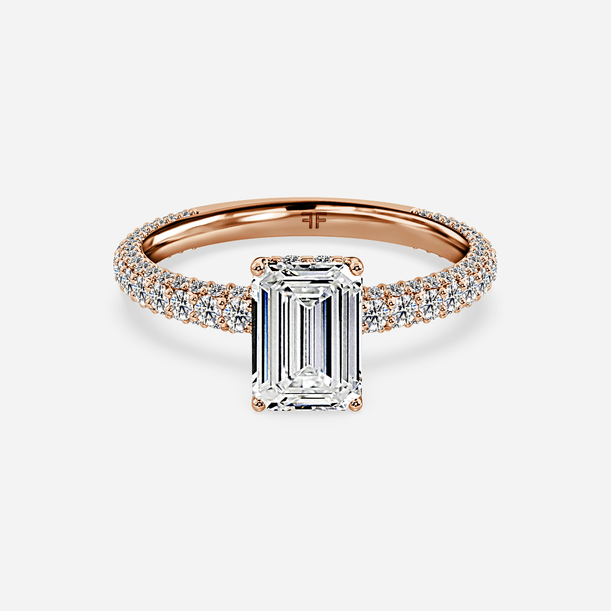 This rose gold hidden halo engagement ring is a stunning and sophisticated piece of jewelry crafted from high-quality rose gold. This ring features a hidden halo design encrusted with sparkling diamonds on the band, adding glamour to the elegant and timeless design Handcrafted in Hatton Gardens, London. Setting only.