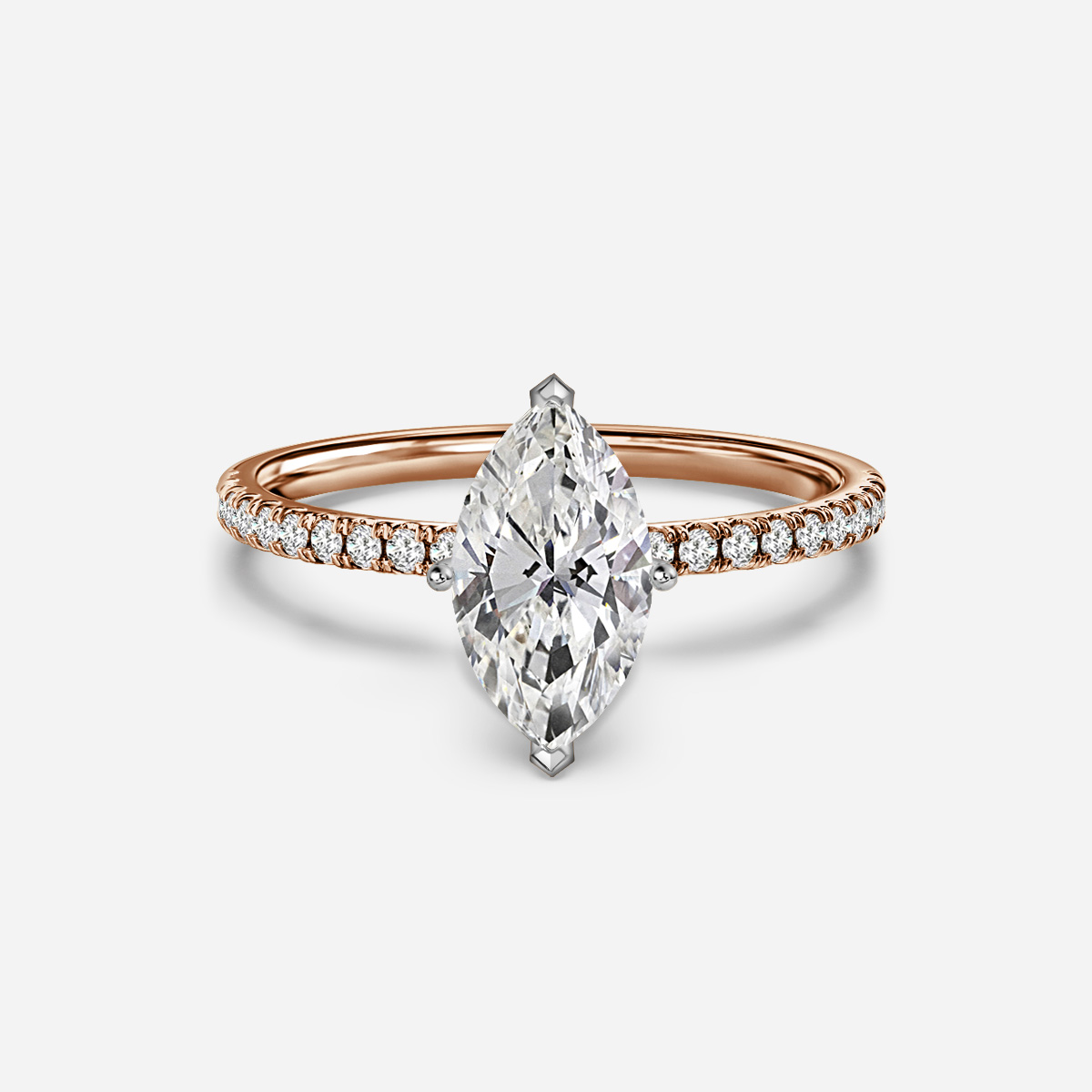 A classic Jessica rose gold two tone engagement ring crafted in traditional yellow gold, showcase a center diamond. Supported by four prongs and pavé-set diamonds. Handcrafted in Hatton Garden, London Centre Diamond Not Included Setting Only