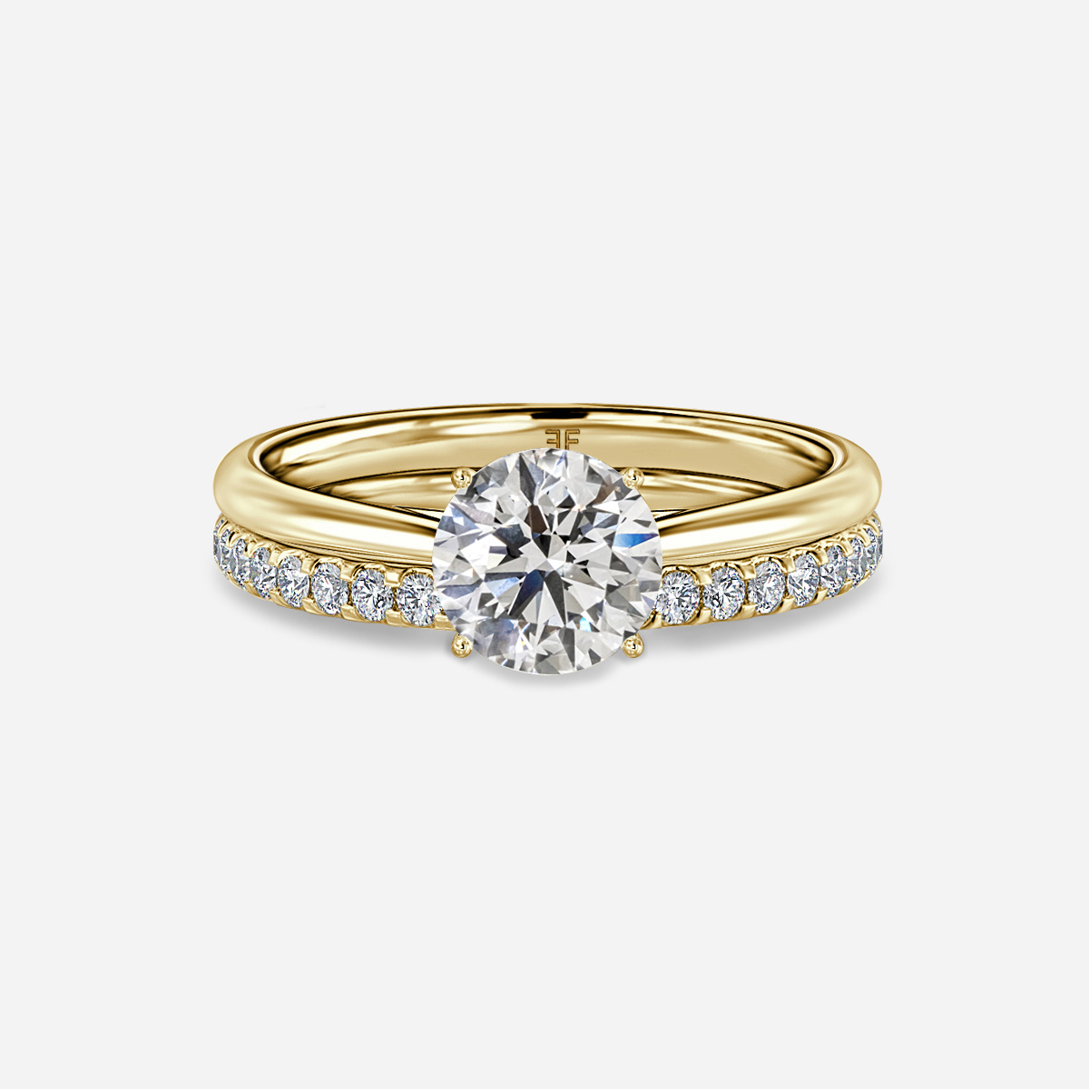 Jessie Solitaire Yellow Gold Pavé Band Bridal Set Engagement Ring