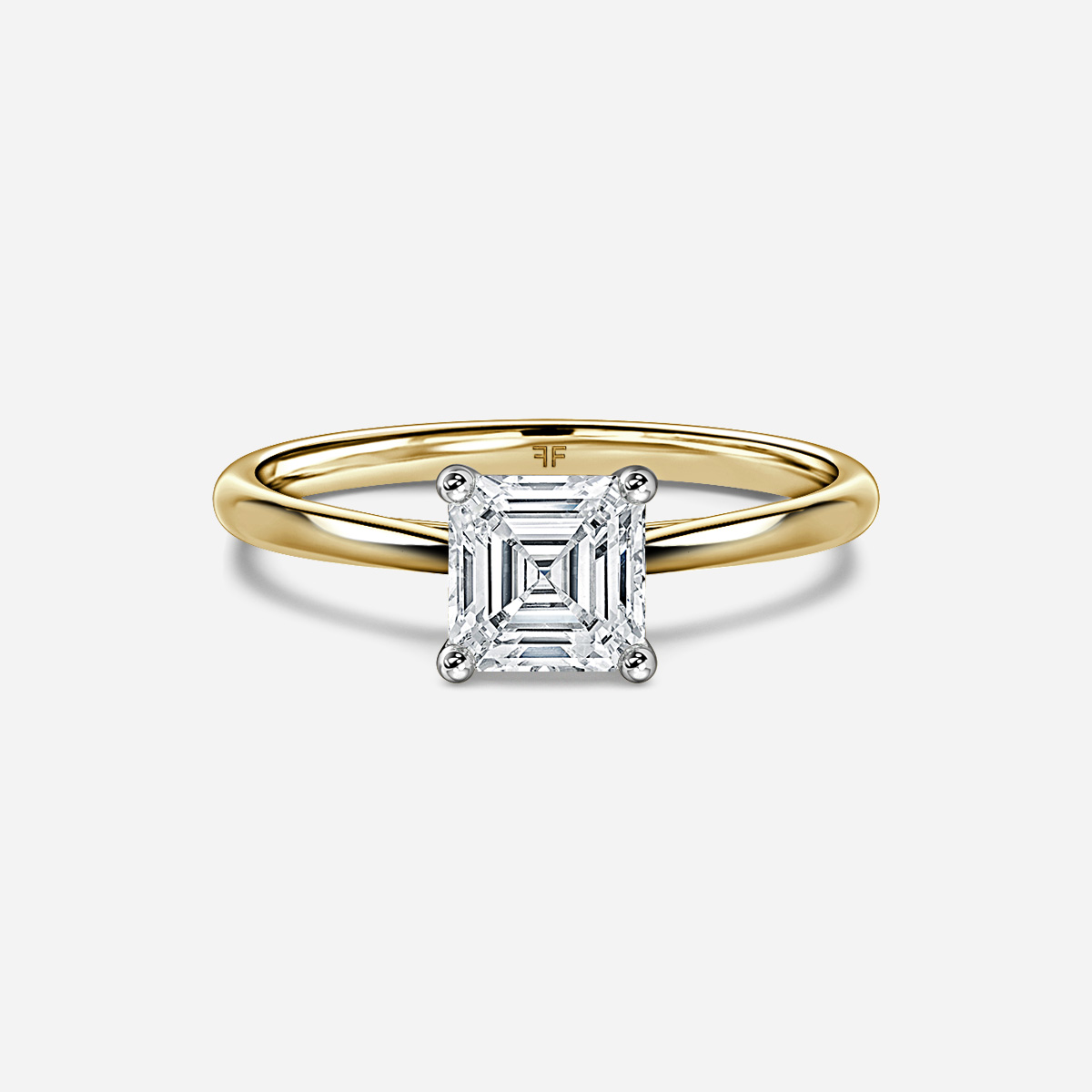 The modern tulip two tone yellow gold engagement ring combines timeless elegance with contemporary flair. Its sleek design features a stunning tulip-shaped setting that securely holds a brilliant diamond. Handcrafted in Hatton Garden, London Centre Diamond Not Included Setting Only
