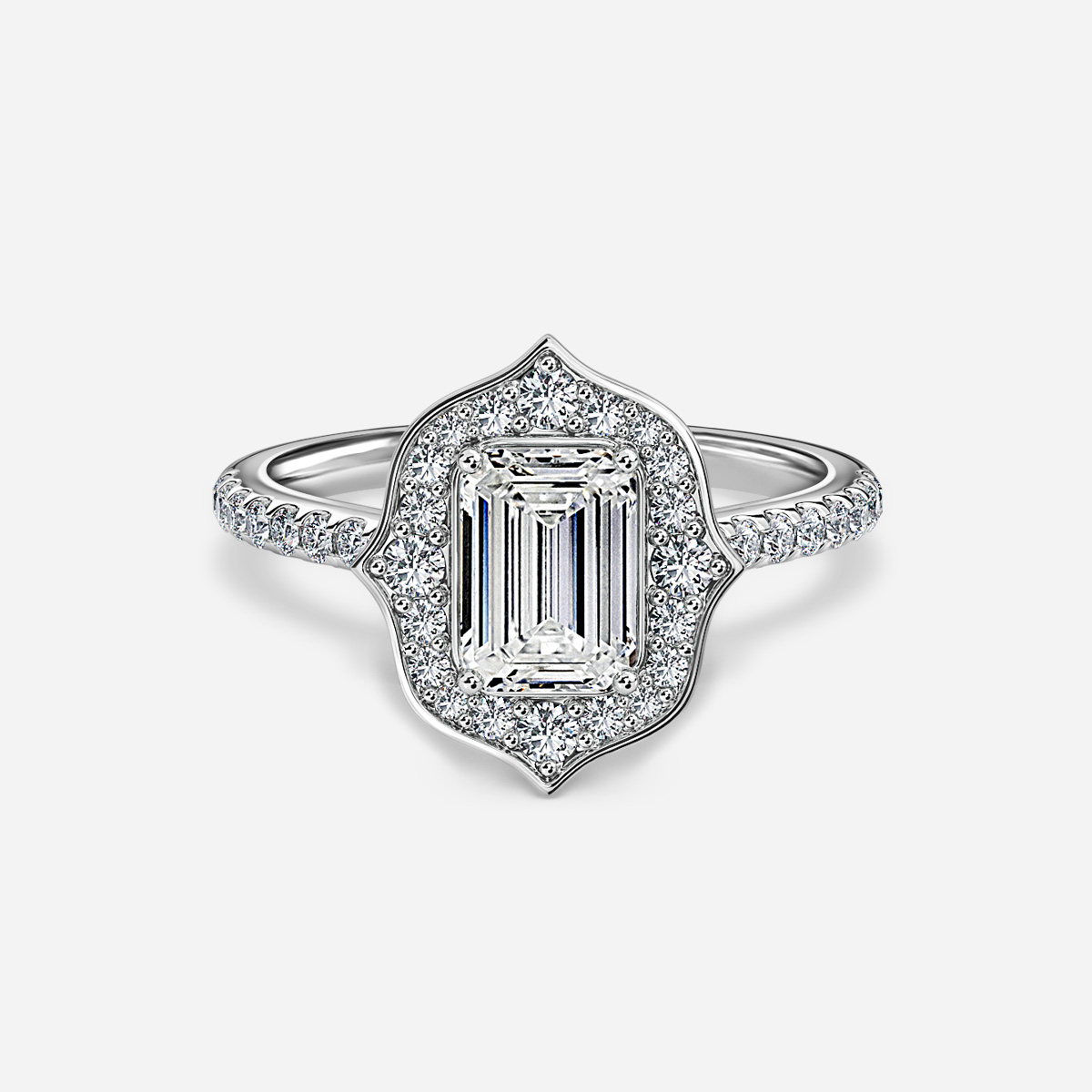 The Joon Platinum Grain Set Compass Halo Engagement Ring exudes timeless elegance with its intricate grain setting and a radiant compass-inspired halo, symbolizing enduring love and direction in a stunning platinum setting. Handcrafted in Hatton Garden, London. Center Diamond Not Included, Setting Only