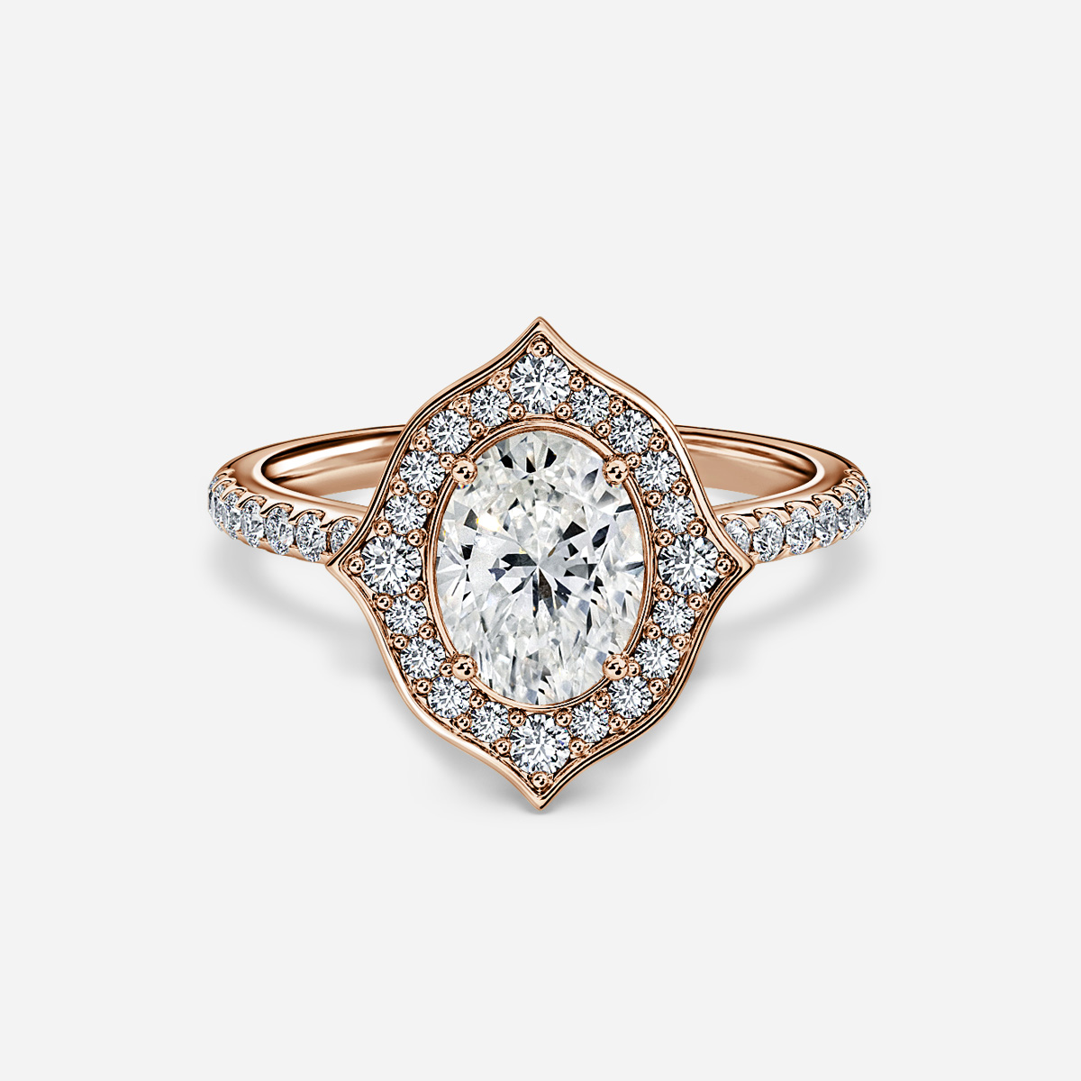 The Joon Rose Gold Grain Set Compass Halo Engagement Ring exudes timeless elegance with its intricate grain setting and a radiant compass-inspired halo, symbolizing enduring love and direction in a stunning rose gold setting. Handcrafted in Hatton Garden, London. Center Diamond Not Included, Setting Only