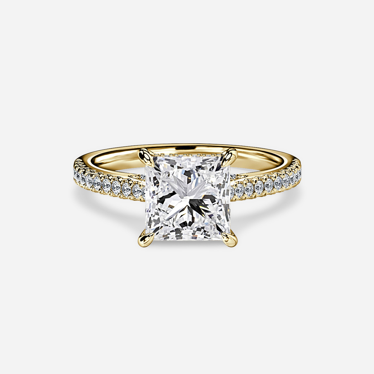 The Juliette Hidden Halo Engagement Ring is an exquisite design that showcases a radiant center stone accented by a delicate hidden halo. Sparkling shoulder diamonds enhance its brilliance, adding a touch of elegance. A ring that feels as special and radiant as your love. Handcrafted in Hatton Gardens, London. Centre Diamond Not Included Setting Only