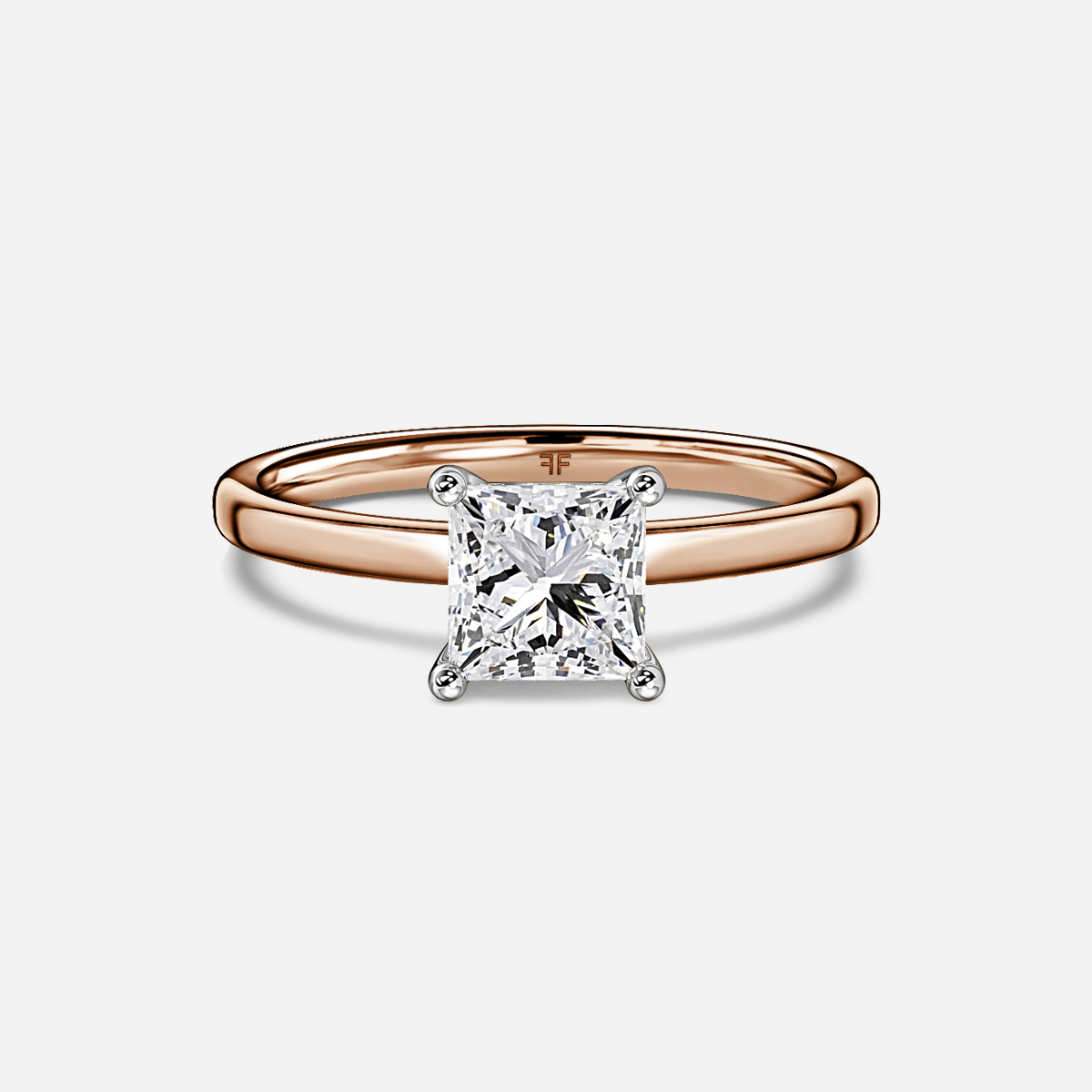 This elegant kate two tone hidden halo rose gold engagement ring features a glittering hidden halo of diamonds that wraps around the center gem while a plain band complements the gallery for a chic look. Handcrafted in Hatton Gardens, London. Centre Diamond Not Included Setting only