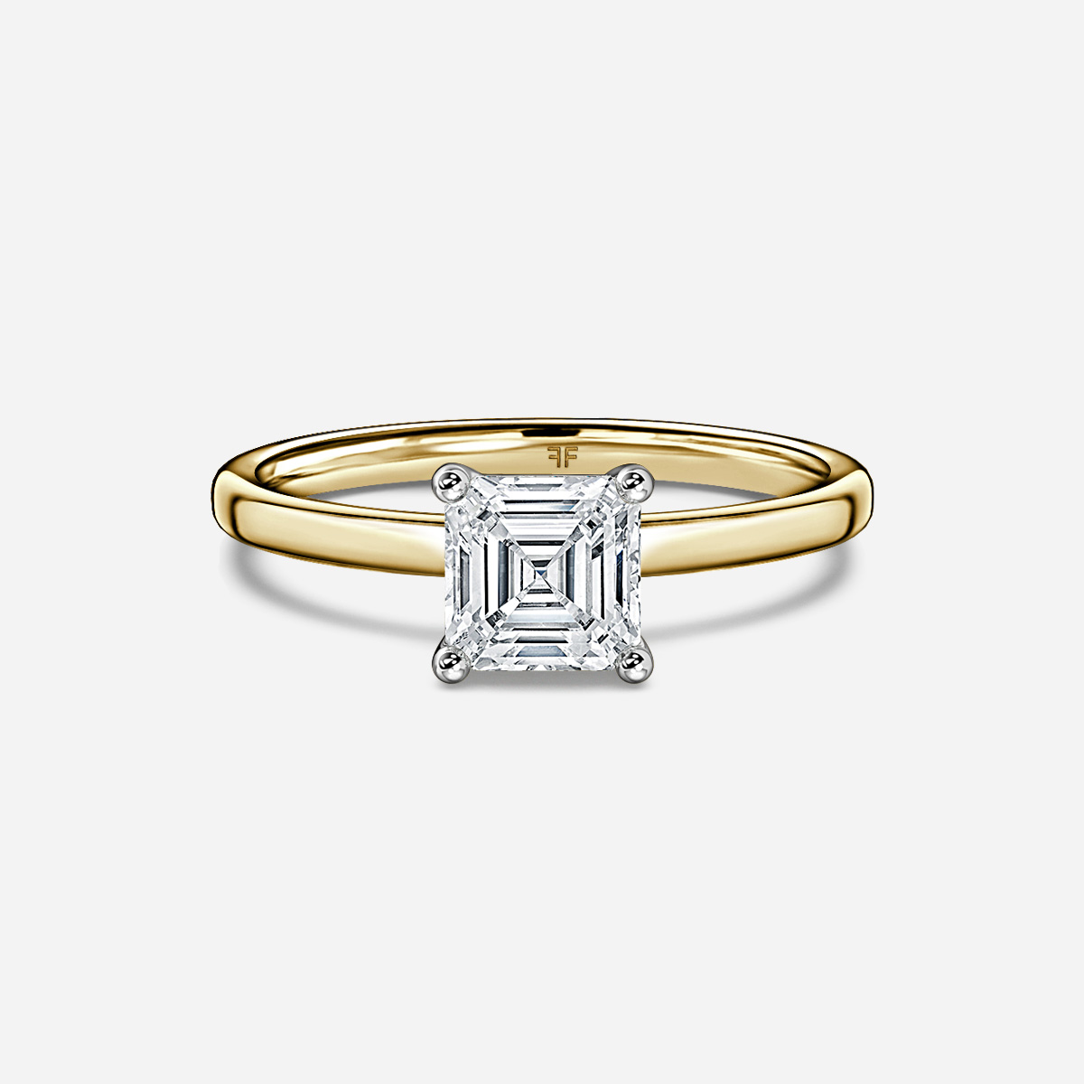 The Kate Two Tone Yellow Gold Engagement Ring boasts a delicate hidden halo of diamonds that encircle the center gemstone. A slender band adds a touch of chic simplicity, perfectly complementing the gallery. A ring that is perfect for those who love understated diamond details and sophisticated solitaire styles. Crafted by hand with recycled Yellow and White 18k Gold in our London, Hatton Garden workshop. The price is for the setting only, the centre diamond is chosen separately.