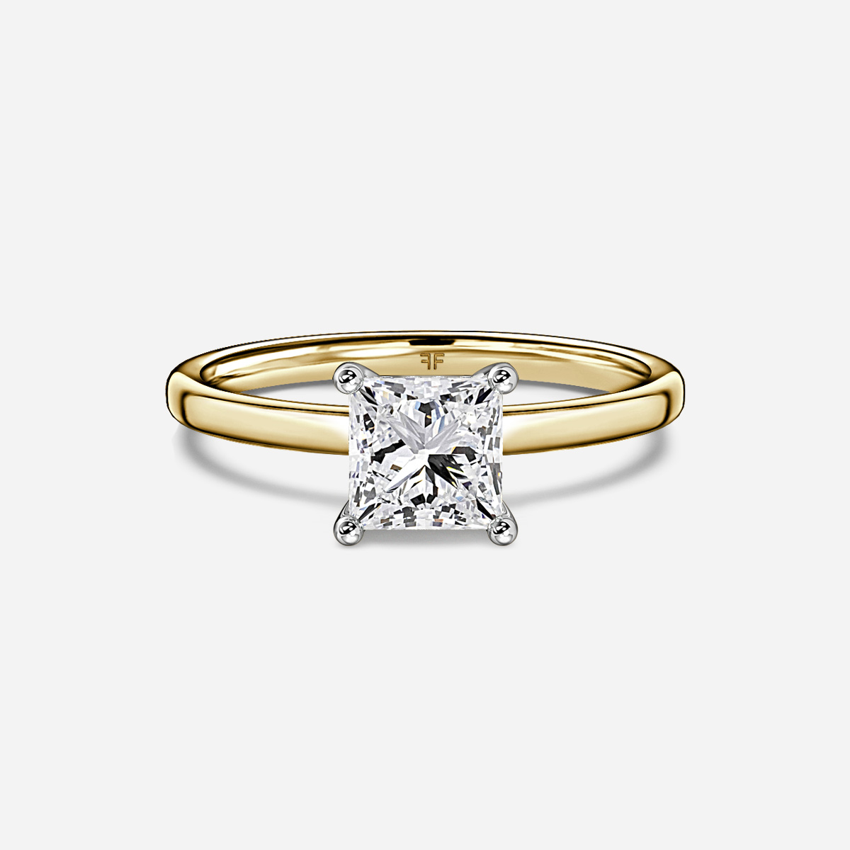The Kate Two Tone Yellow Gold Engagement Ring boasts a delicate hidden halo of diamonds that encircle the center gemstone. A slender band adds a touch of chic simplicity, perfectly complementing the gallery. A ring that is perfect for those who love understated diamond details and sophisticated solitaire styles. Crafted by hand with recycled Yellow and White 18k Gold in our London, Hatton Garden workshop. The price is for the setting only, the centre diamond is chosen separately.