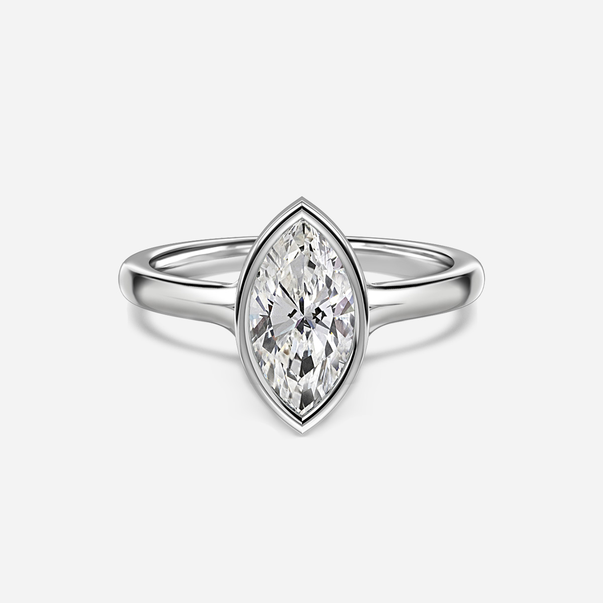 The London ring features a sleek bezel setting in luminous platinum, offering a clean, contemporary style. The polished band and secure design create a refined silhouette, blending modern elegance with everyday durability for a timeless, sophisticated look. Handcrafted in Hatton Gardens, London. Diamond Center Not Included Setting Only