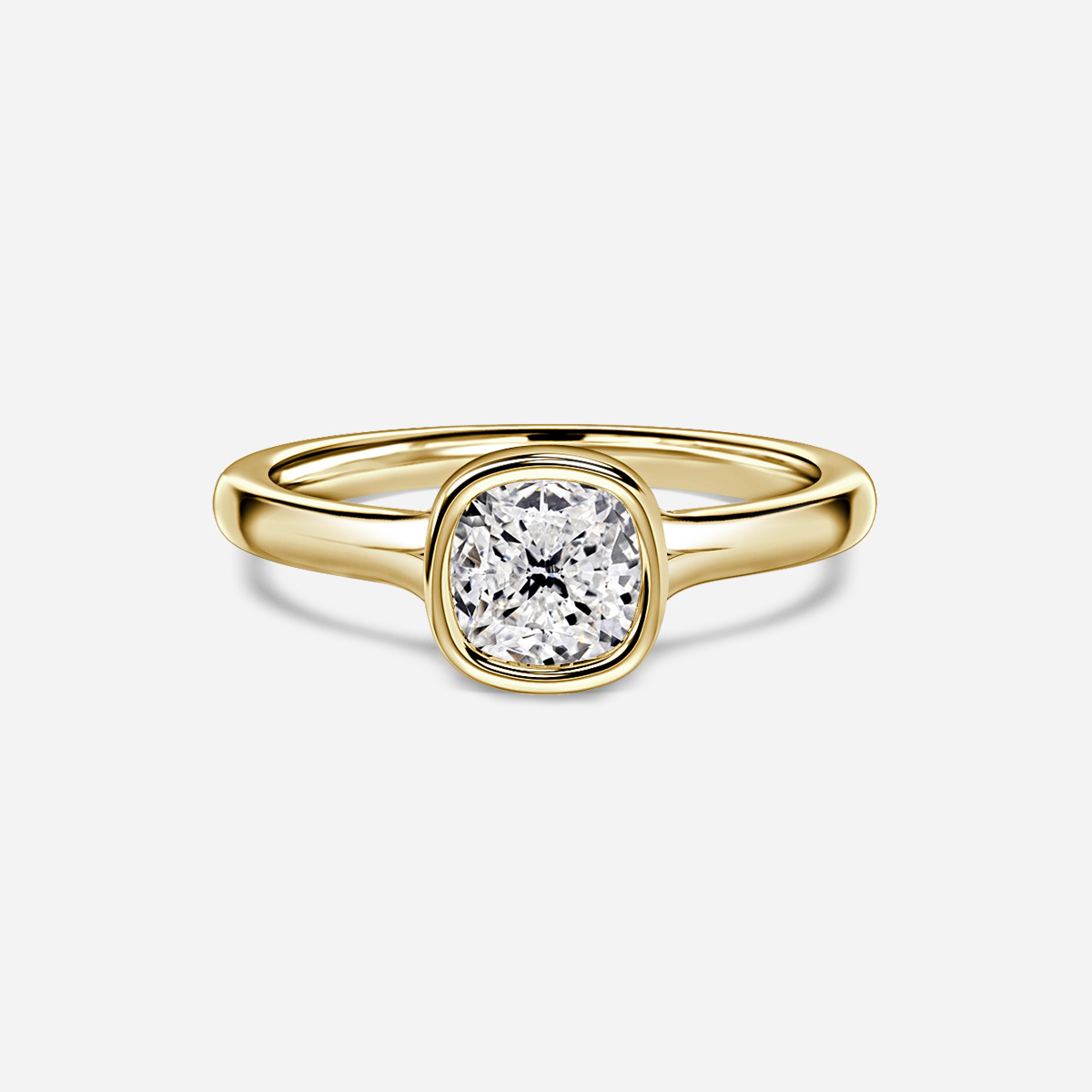 The London ring showcases a beautifully sleek bezel setting, crafted in radiant yellow gold. Its smooth, polished band offers a modern and timeless look, perfect for everyday elegance. The secure setting enhances the stone's brilliance while maintaining a clean and sophisticated silhouette for effortless, refined style. Handcrafted in Hatton Gardens, London. Diamond Center Not Included Setting Only