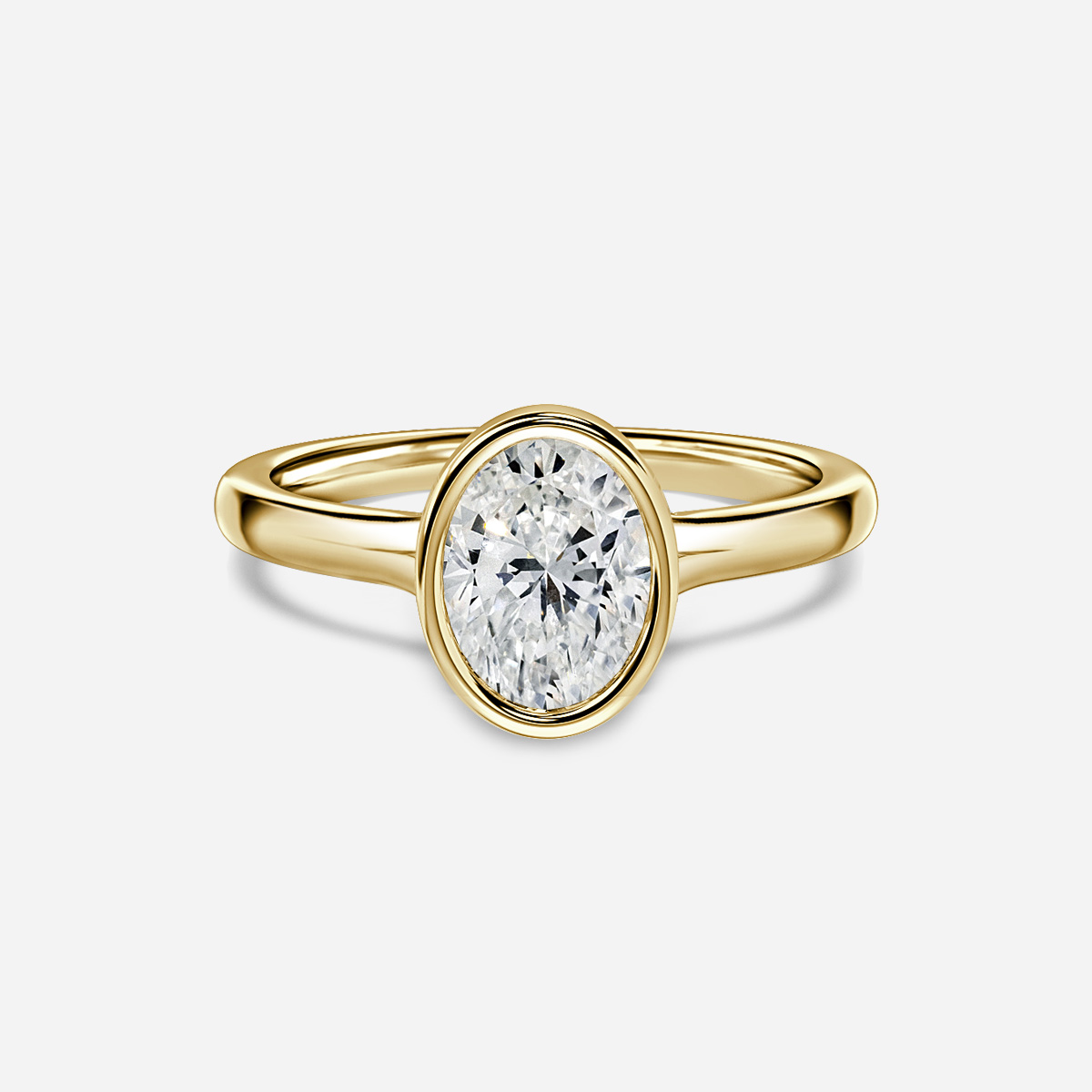 The London ring showcases a beautifully sleek bezel setting, crafted in radiant yellow gold. Its smooth, polished band offers a modern and timeless look, perfect for everyday elegance. The secure setting enhances the stone's brilliance while maintaining a clean and sophisticated silhouette for effortless, refined style. Handcrafted in Hatton Gardens, London. Diamond Center Not Included Setting Only