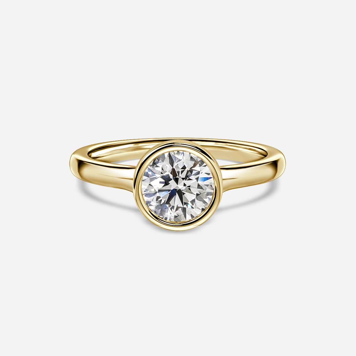The London ring in yellow gold showcases a sleek solitaire design with a smooth bezel setting. Its polished band and refined silhouette create a timeless, modern look, perfect for effortless everyday elegance and sophisticated charm. Handcrafted in Hatton Gardens, London. Diamond Center Not Included Setting Only