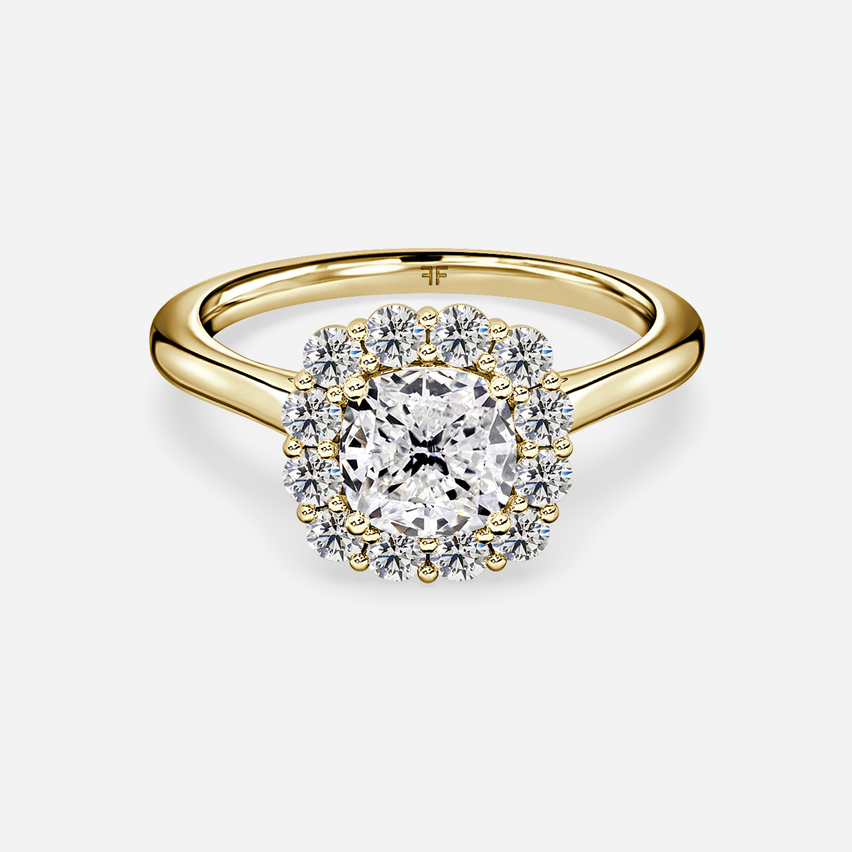 A yellow gold cluster diamond engagement ring is a stunning and unique piece of jewelry featuring a cluster of intricate stones set in a stylish design. It is perfect for expressing your everlasting love and commitment. Handcrafted in Hatton Gardens, London. Centre Diamond Not Included Setting Only