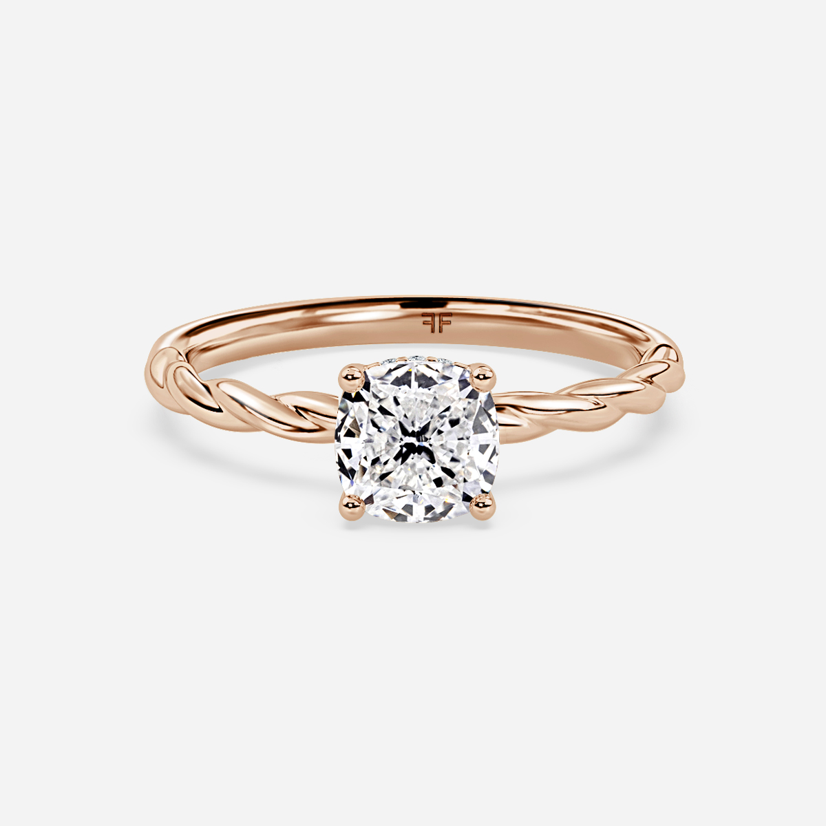 This rose gold twisted plain band hidden halo engagement ring is a stunning combination of modern and classic. With a twisted band design and a hidden halo setting, it creates a unique and elegant look that is sure to impress. Handcrafted in Hatton Gardens, London. Centre Diamond Not Included Setting Only