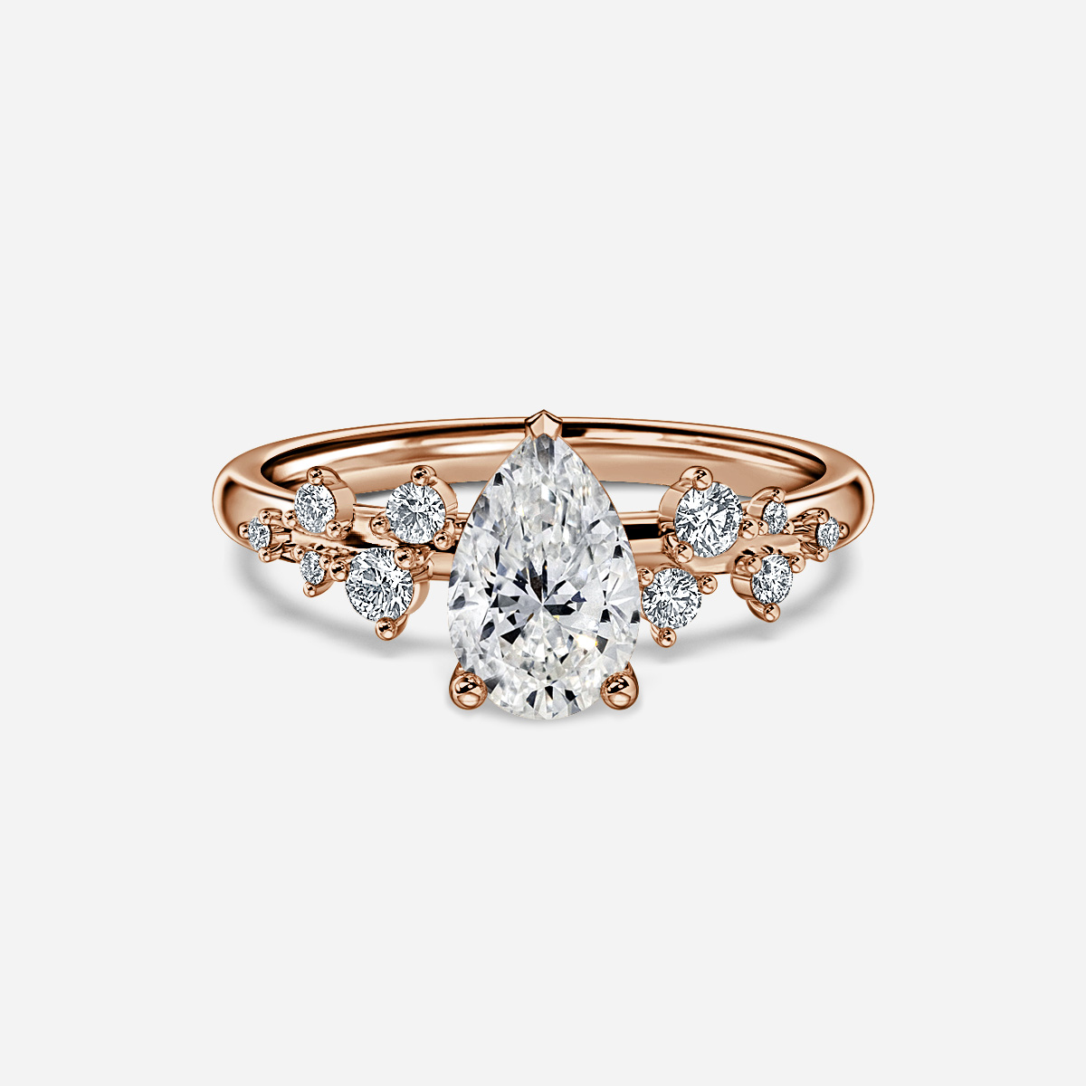 The Morning Star Rose Gold Unique Engagement Ring features a central diamond elegantly framed by a sophisticated chevron pattern of side diamonds that gradually taper in size from the center, enhancing the ring’s dynamic brilliance and refined allure. Handcrafted in Hatton Gardens, London. Centre Diamond Not Included Setting Only