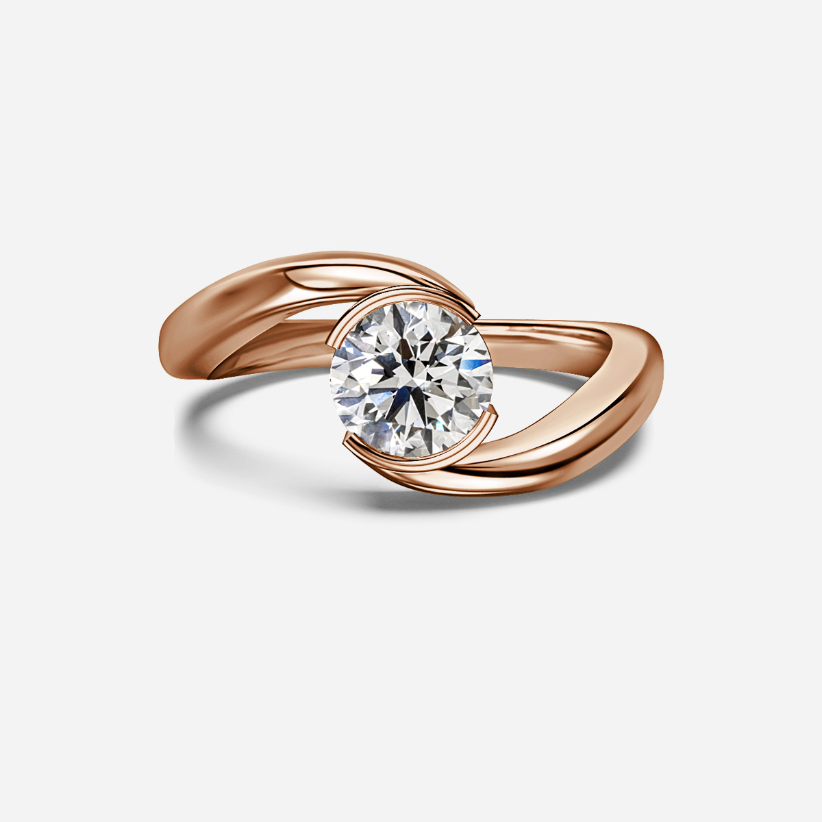 The Naia Rose Gold Solitaire Ring is a modern masterpiece, featuring a gracefully twisting band that cradles a brilliant diamond in a secure tension setting. Its fluid, open design symbolizes harmony and movement, making it a striking choice for those who appreciate contemporary elegance. Crafted in rose gold, this ring offers both durability and a luminous, refined finish.