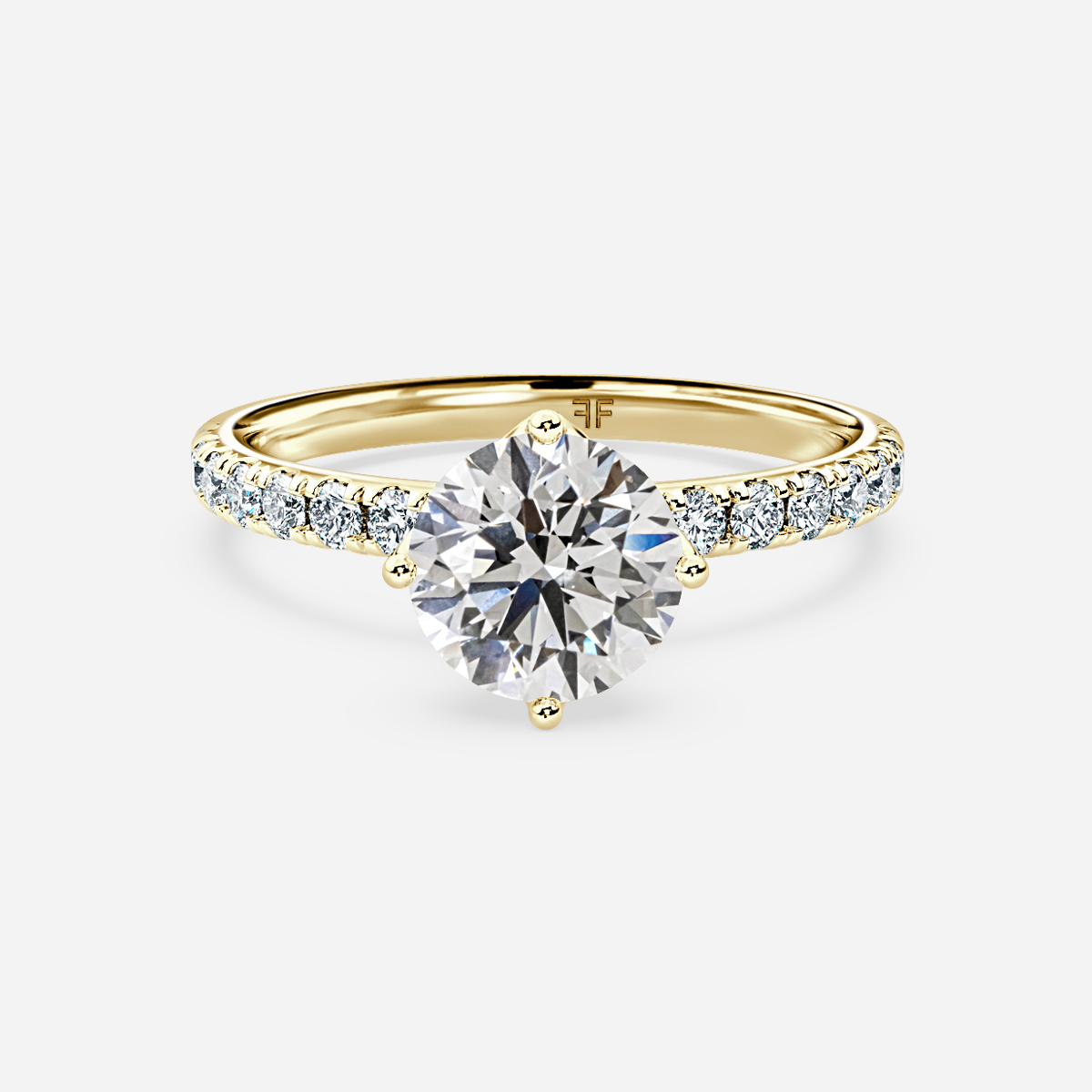 The Four prong solitaire engagement ring is a timeless classic, featuring a single diamond set securely in six prongs for maximum sparkle and beauty. This understated design puts all the focus on the center diamond, making it a perfect choice for those who want a simple yet elegant ring.