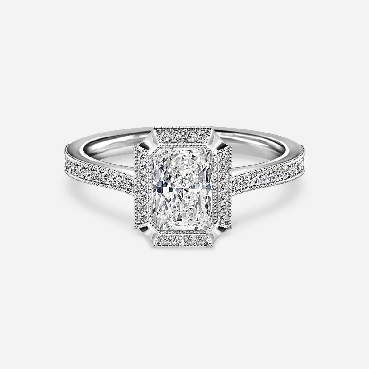 Nina Milgrain Bezel Platinum Halo Engagement Ring