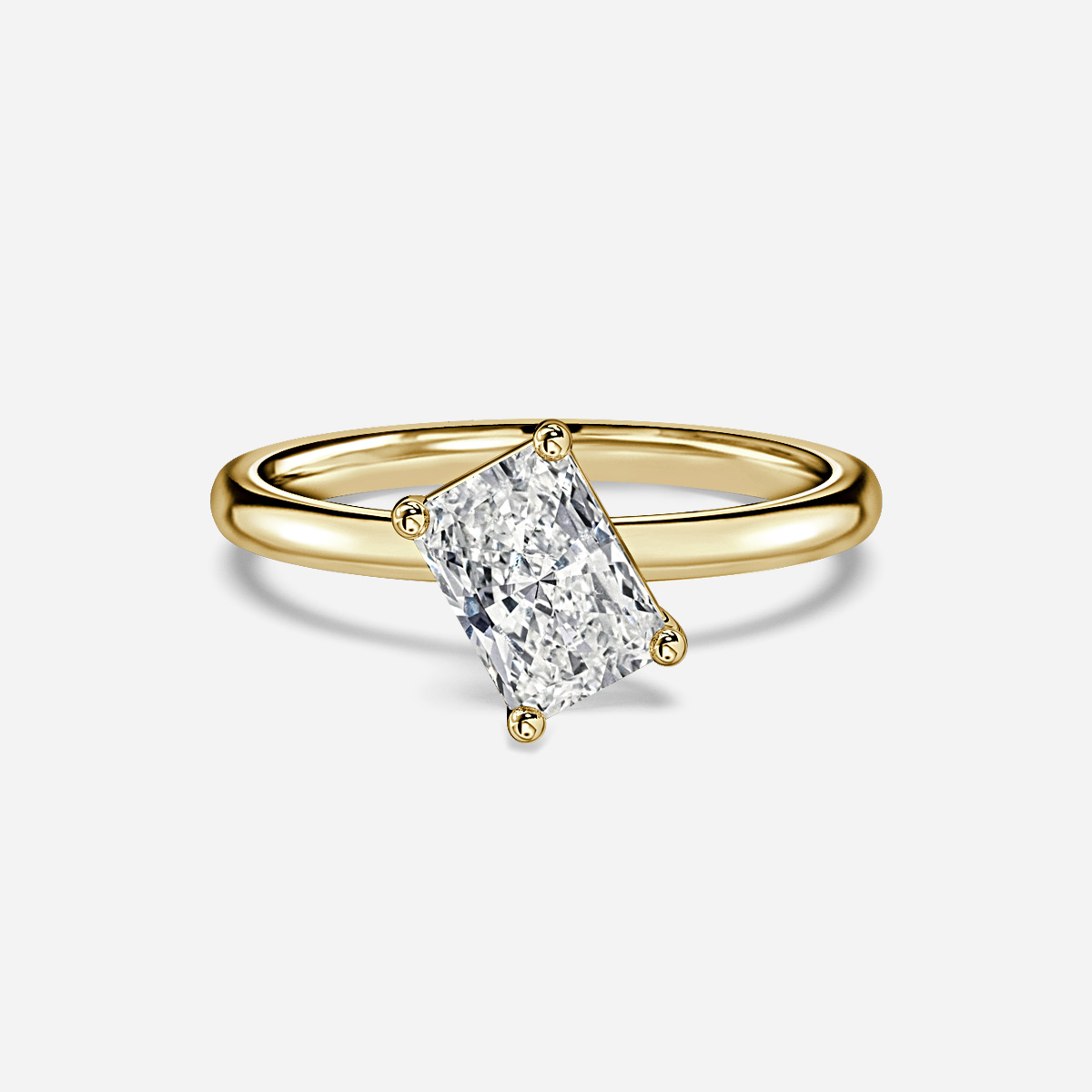 The North West Yellow Gold Solitaire Engagement Ring features a beautifully understated design, boasting a brilliant solitaire diamond elegantly set atop a sleek plain band of yellow gold , symbolizing enduring love and refined sophistication. Handcrafted in Hatton Garden, London Centre Diamond Not Included Setting Only