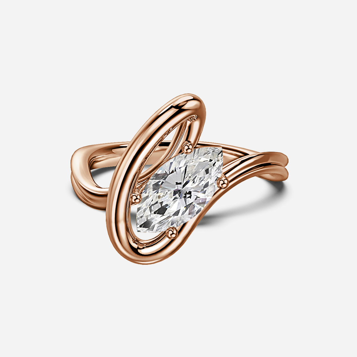 The Ocean Tide showcases a gracefully curved band that mimics the gentle ebb and flow of ocean tides. This unique solitaire rises like a tidal wave, evoking the beauty of the sea. Handcrafted in Hatton Garden, London. Centre Diamond Not Included, Setting Only.