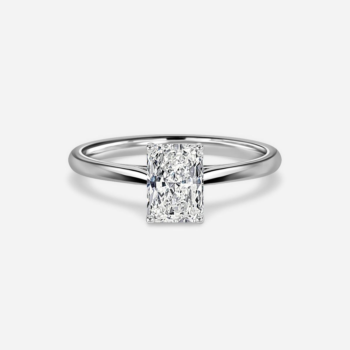 The Odette combines a strong cathedral setting with an open gallery, revealing the underneath of the diamond to produce a rich lustre and sparkle. Handcrafted in Hatton Garden, London. Centre Diamond Not Included, Setting Only.
