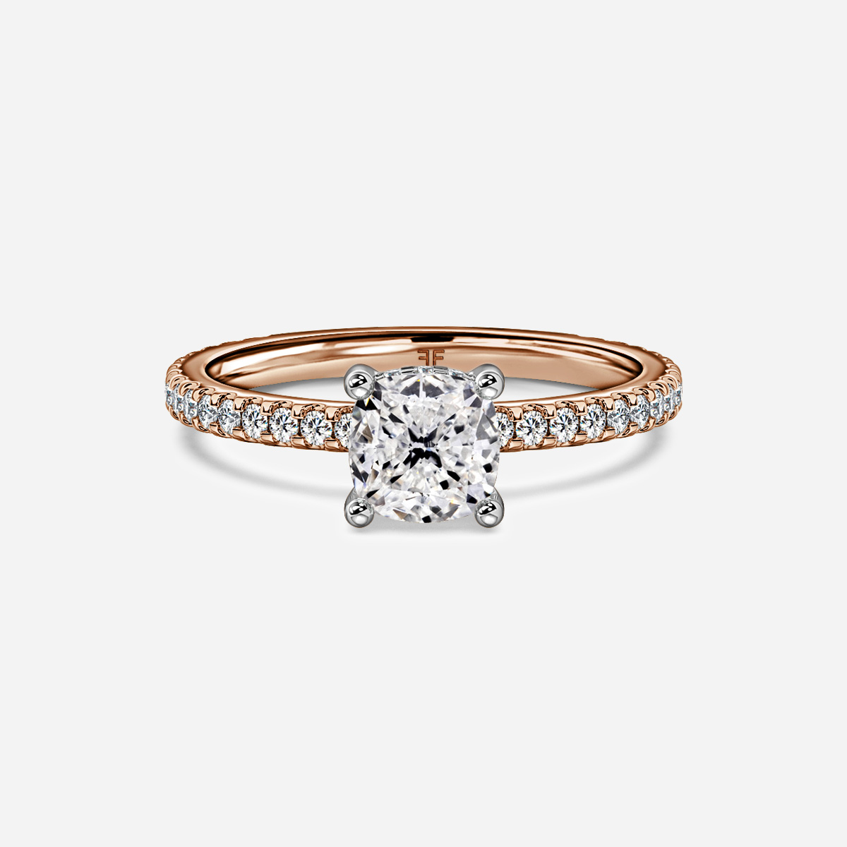 The two tone rose gold micro pave diamond Danity engagement ring is an exquisite piece of craftsmanship featuring a sparkling combination of pave-set diamonds set in alternating precious metal tones. Handcrafted in Hatton Gardens, London. Centre Diamond Not Included Setting only