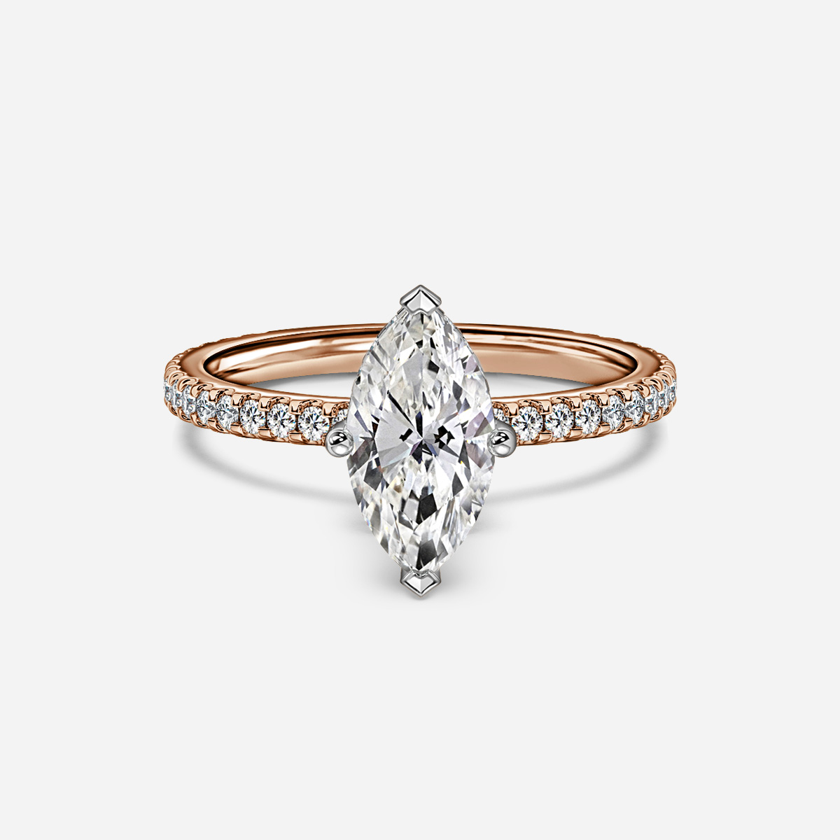 The two tone rose gold micro pave diamond Danity engagement ring is an exquisite piece of craftsmanship featuring a sparkling combination of pave-set diamonds set in alternating precious metal tones. Handcrafted in Hatton Gardens, London. Centre Diamond Not Included Setting only