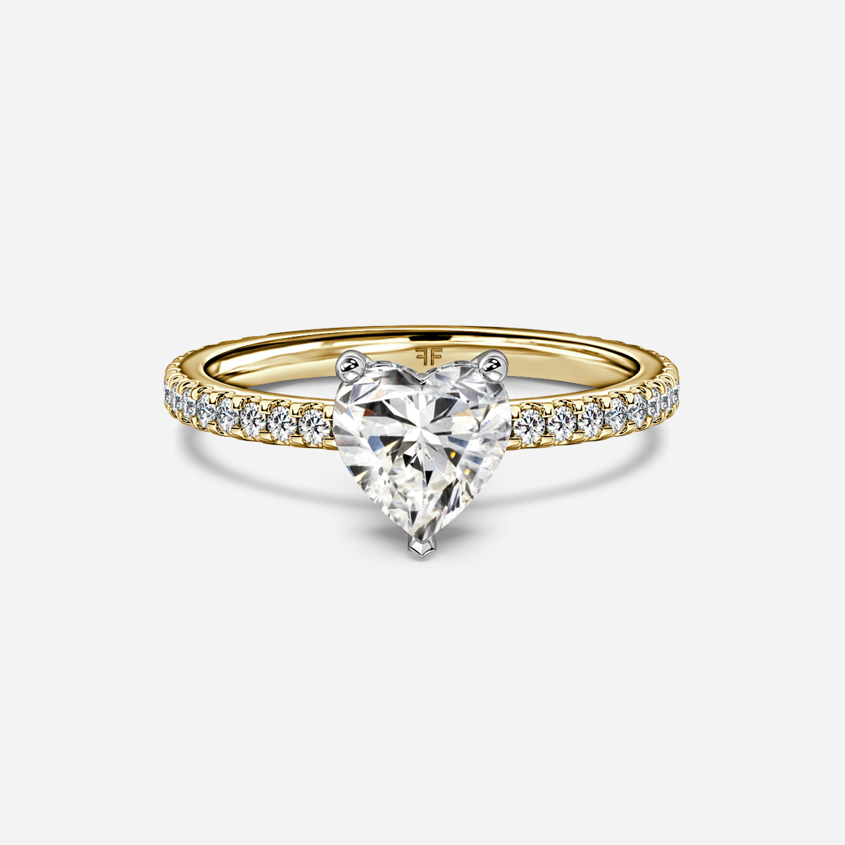 The two tone yellow gold micro pave diamond Danity engagement ring is an exquisite piece of craftsmanship featuring a sparkling combination of pave-set diamonds set in alternating precious metal tones. Handcrafted in Hatton Gardens, London. Centre Diamond Not Included Setting only