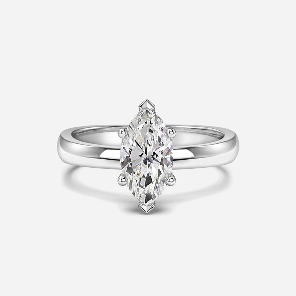 The Sky engagement ring is designed with a single diamond held in a four-prong setting, crafted in 18K white gold. A hidden halo sits just below the centre stone, adding a soft sparkle that catches the light beautifully. Its thick polished band gives the ring a clean and modern look, making it perfect for someone who loves simple elegance with a touch of detail. Handcrafted by Flawless Fine Jewellery, Hatton Garden, London. Centre Diamond Not Included Setting only