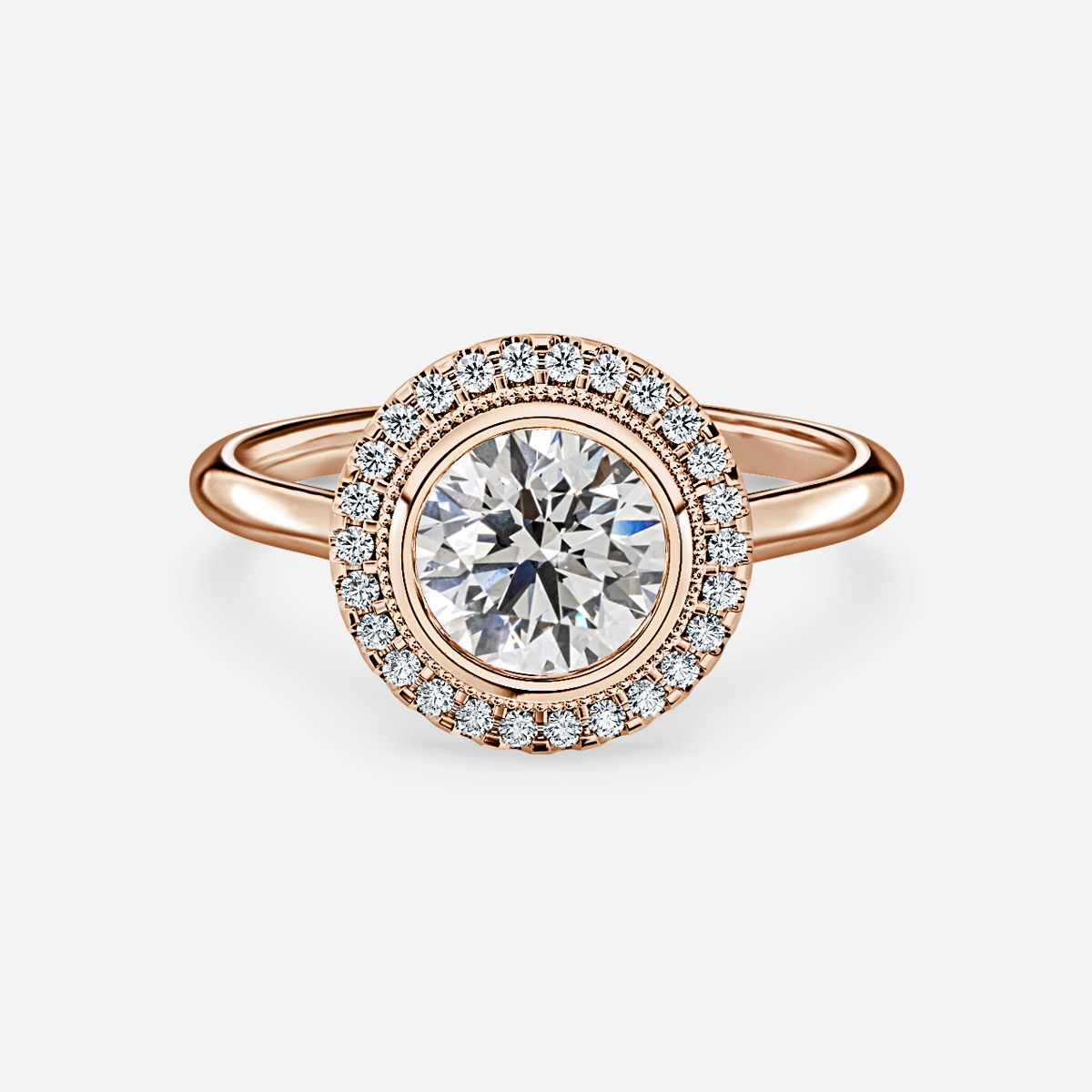 A rose gold halo engagement ring is a luxurious and elegant way to propose. The platinum band and diamond halo setting create a stunning and timeless look that will be cherished for years to come. Handcrafted in Hatton Garden, London Centre Diamond Not Included Setting Only