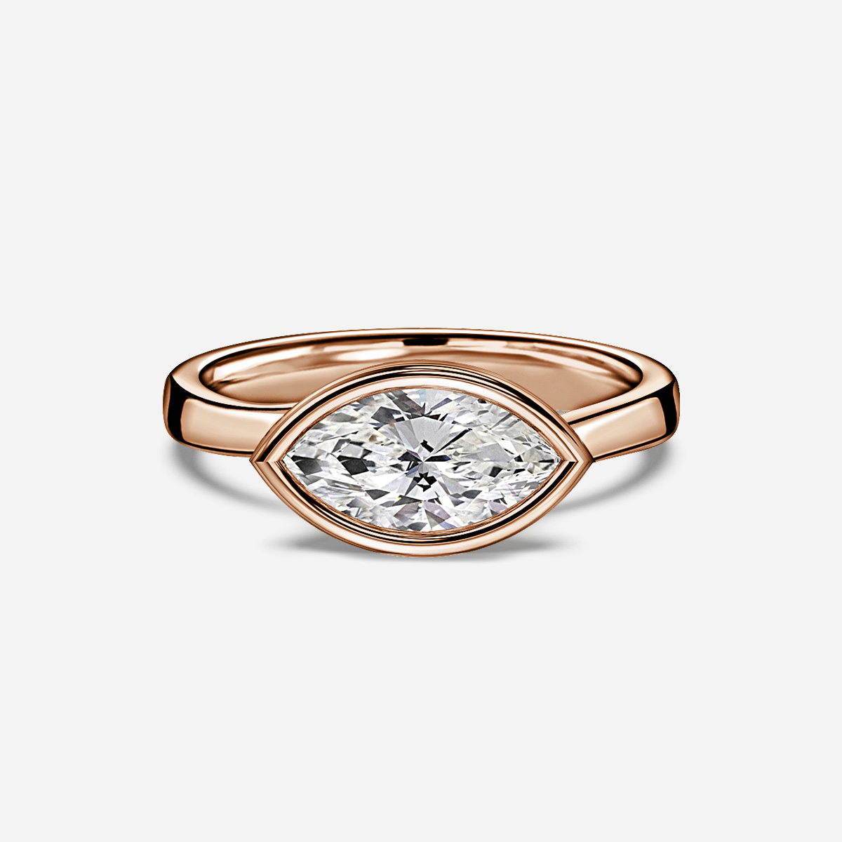 The Sydney Rose Gold Solitaire Engagement Ring showcases a timeless center diamond, beautifully embraced by a rose gold band that elegantly sweeps around from both sides, creating a sophisticated twist on a classic design. Handcrafted in Hatton Garden, London Centre Diamond Not Included Setting Only