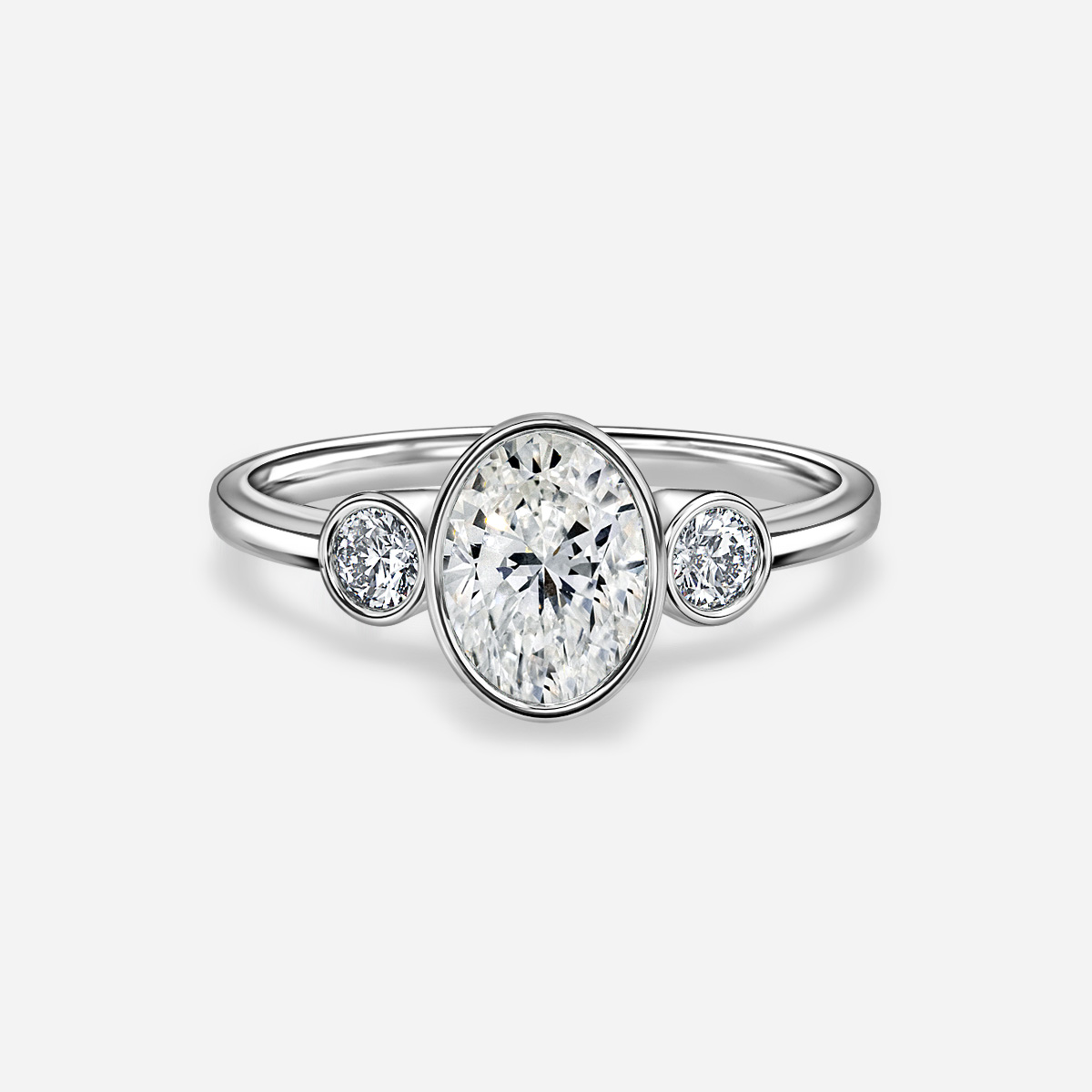The Varani Platinum Three Stone Bezel Engagement Ring exudes timeless elegance with its exquisite design, featuring a radiant round diamond delicately embraced by a platinum bezel setting. Complemented by two additional sparkling round diamonds on each side, this ring epitomizes sophistication and symbolizes everlasting love. Handcrafted in Hatton Garden, London Centre Diamond Not Included Setting Only