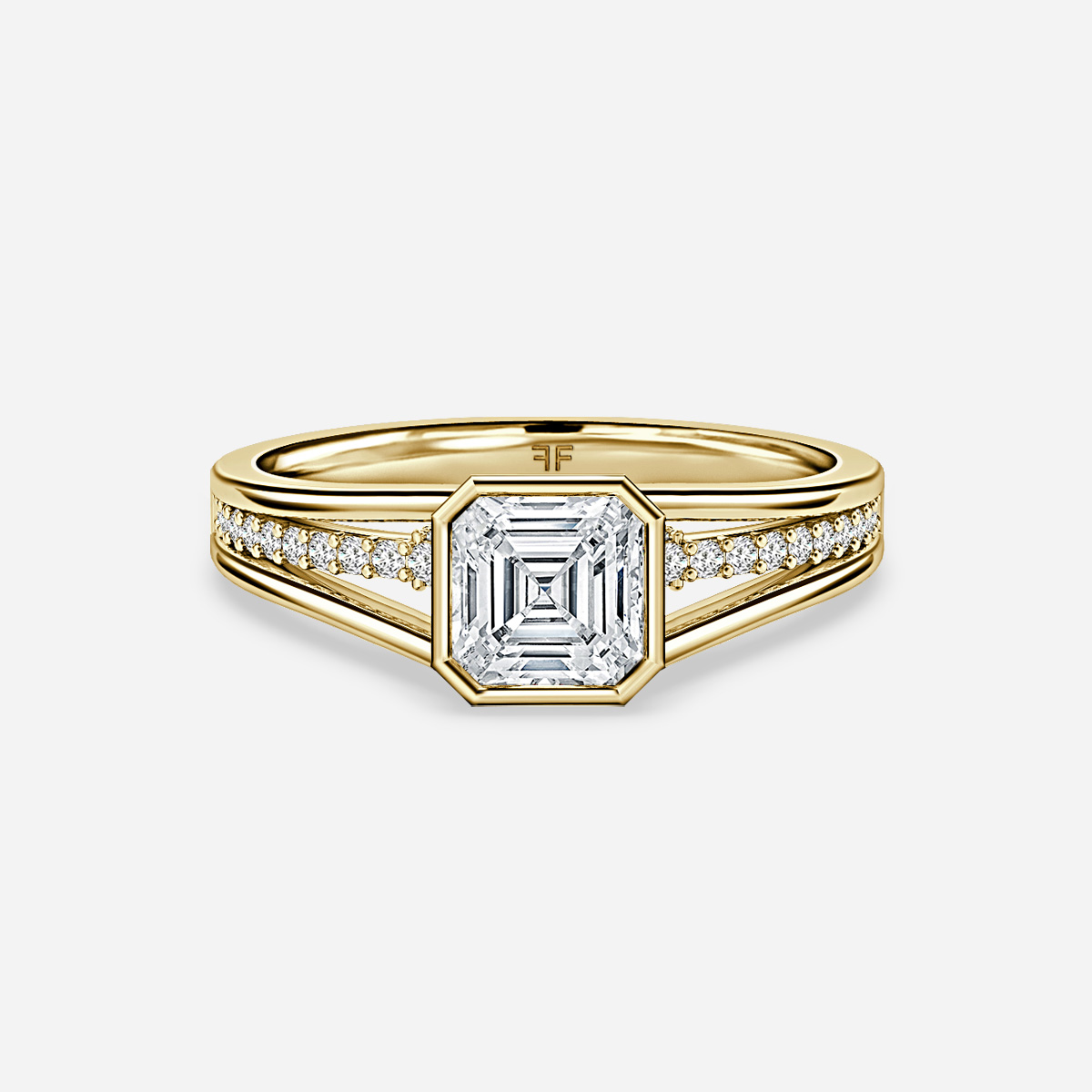 Elevate your love story with the Veda Yellow Gold Bezel Engagement Ring, featuring a stunning diamond cascading from band to bridge along a gracefully split shank. Embrace the allure of intricate design and unparalleled beauty in this symbol of eternal devotion. Handcrafted in Hatton Gardens, London. Centre Diamond Not Included Setting Only