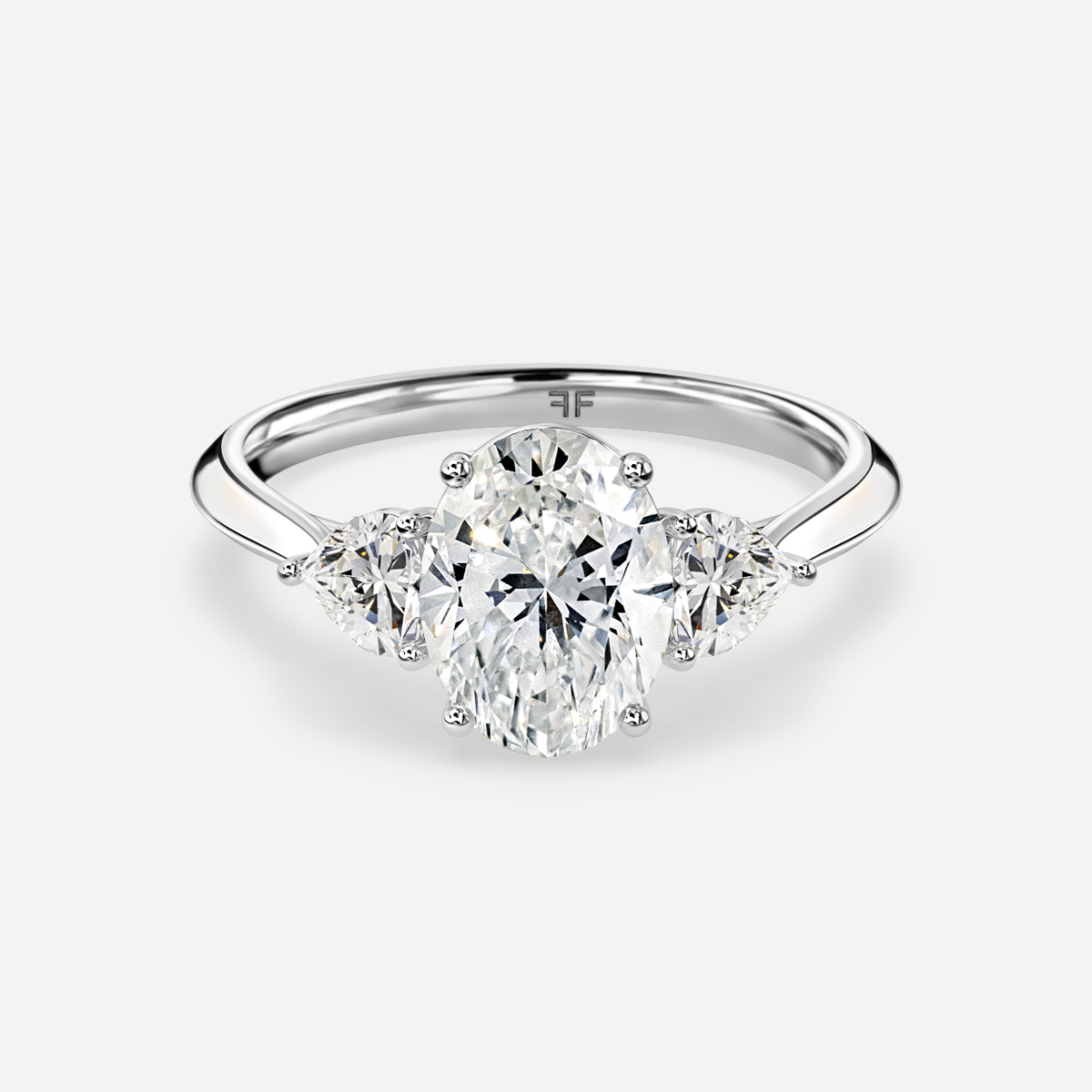 A platinum "trilogy engagement ring" is a classic design featuring "three diamonds" of the same size, symbolizing the "past, present, and future" of the couple, typically set on a simple "band". It is a sentimental choice for an engagement ring. Handcrafted in Hatton Gardens, London. Centre Diamond Not Included Setting only.