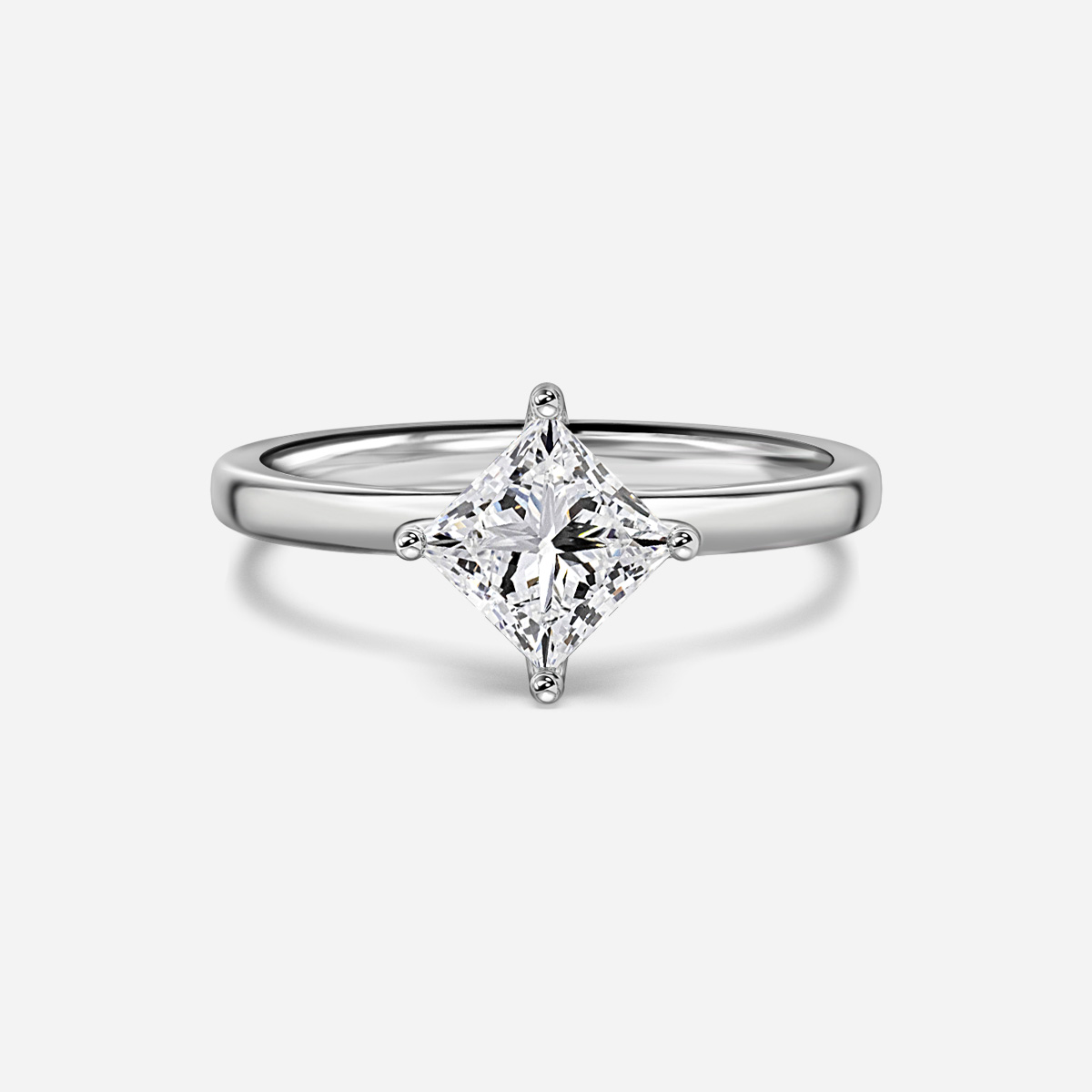 The compass orientation of the Viana's claws offer a unique frame for your choice of diamond. Handcrafted in Hatton Garden, London. Centre Diamond Not Included, Setting Only.