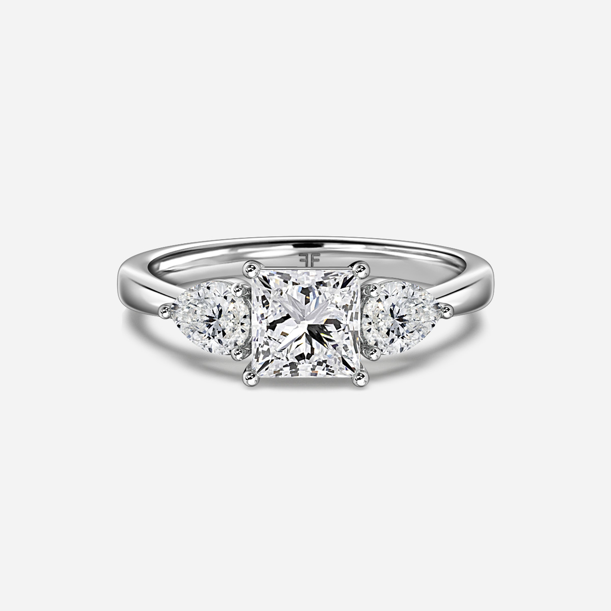 Especially striking with a brilliant cut stone like a round or oval diamond, the Vivian is a contemporary take on the trilogy design. The elegant smooth curves of the bridge and a sleek finish invigorate your diamonds with a fiery sparkle. Handcrafted in Hatton Garden, London. Centre Diamond Not Included, Setting only.