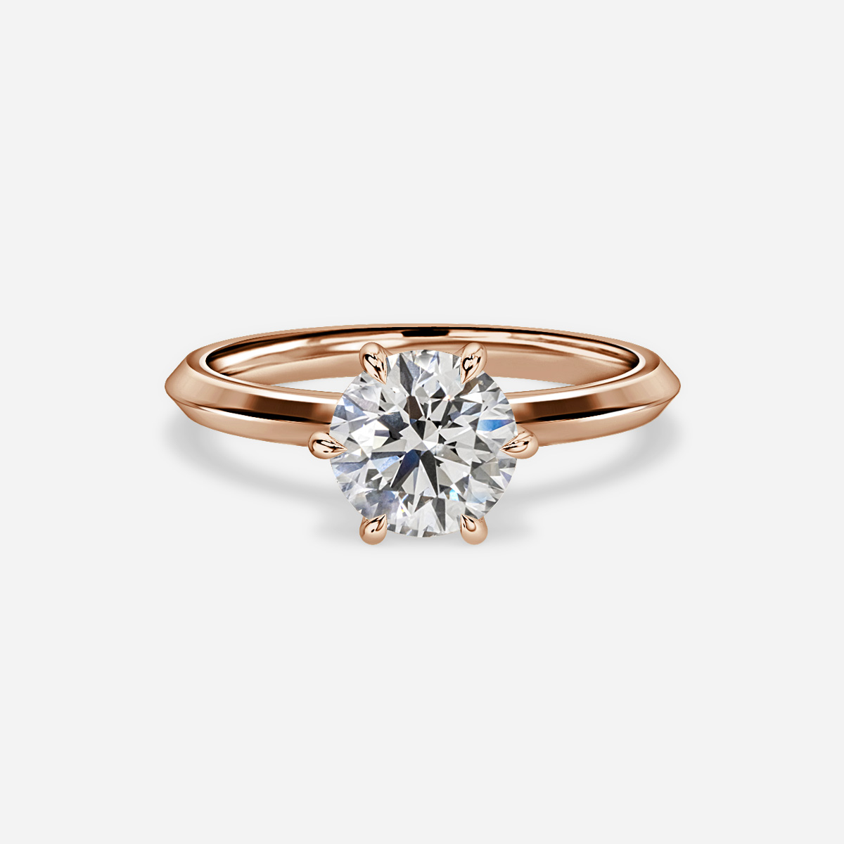 A timeless classic six-prong solitaire rose gold engagement ring. Sparkling and luxurious, this classic beauty is perfect for the modern bride. Handcrafted in Hatton Gardens, London. Centre Diamond Not Included Setting Only