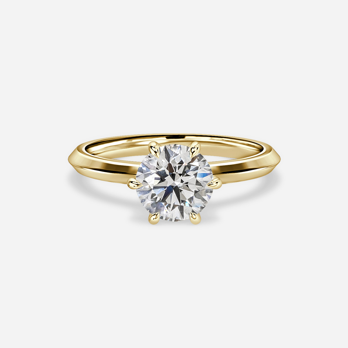 A timeless classic six-prong solitaire yellow gold engagement ring. Sparkling and luxurious, this classic beauty is perfect for the modern bride. Handcrafted in Hatton Gardens, London. Centre Diamond Not Included Setting Only