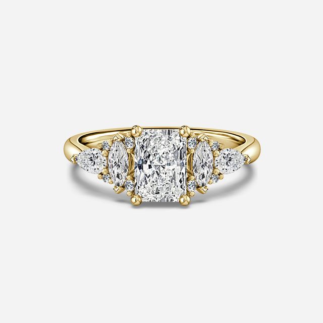 The trilogy ring, or the three-stone ring, is believed to represent the couple’s past, present and future. The style became popularised during the Victorian period, when diamond production was more accessible and common. At Flawless, we have an exclusive collection of trilogy yellow gold engagement rings with a wide selection of diamond cuts. Choose from earth-mined or lab-grown diamonds and get your ring designed your way with us.